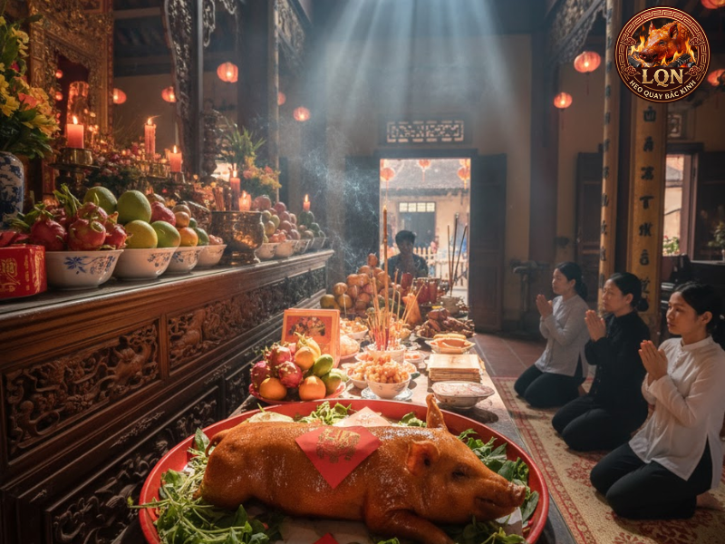 Nhiều người tin rằng mâm cúng có heo sữa quay sẽ giúp buổi lễ thêm trang nghiêm và trọn vẹn.