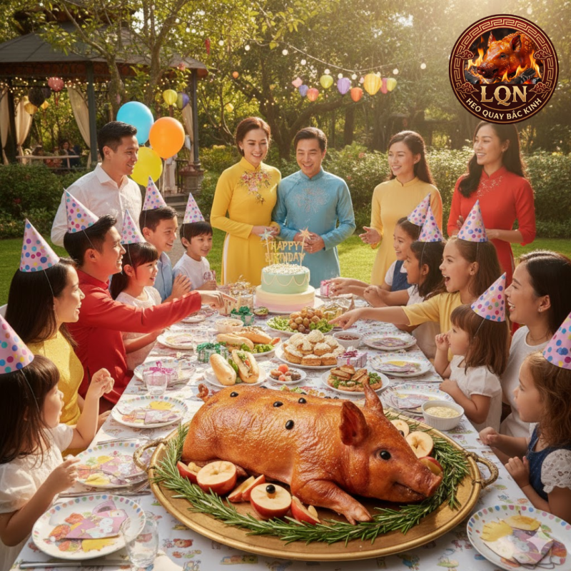 Không chỉ phù hợp cho tiệc gia đình, heo sữa quay còn rất lý tưởng cho tiệc sinh nhật bạn bè, liên hoan nhỏ hay họp mặt đông người. Một con heo sữa quay vàng ươm, da giòn rụm đặt giữa bàn tiệc luôn tạo cảm giác đặc biệt và đáng nhớ cho buổi sinh nhật.